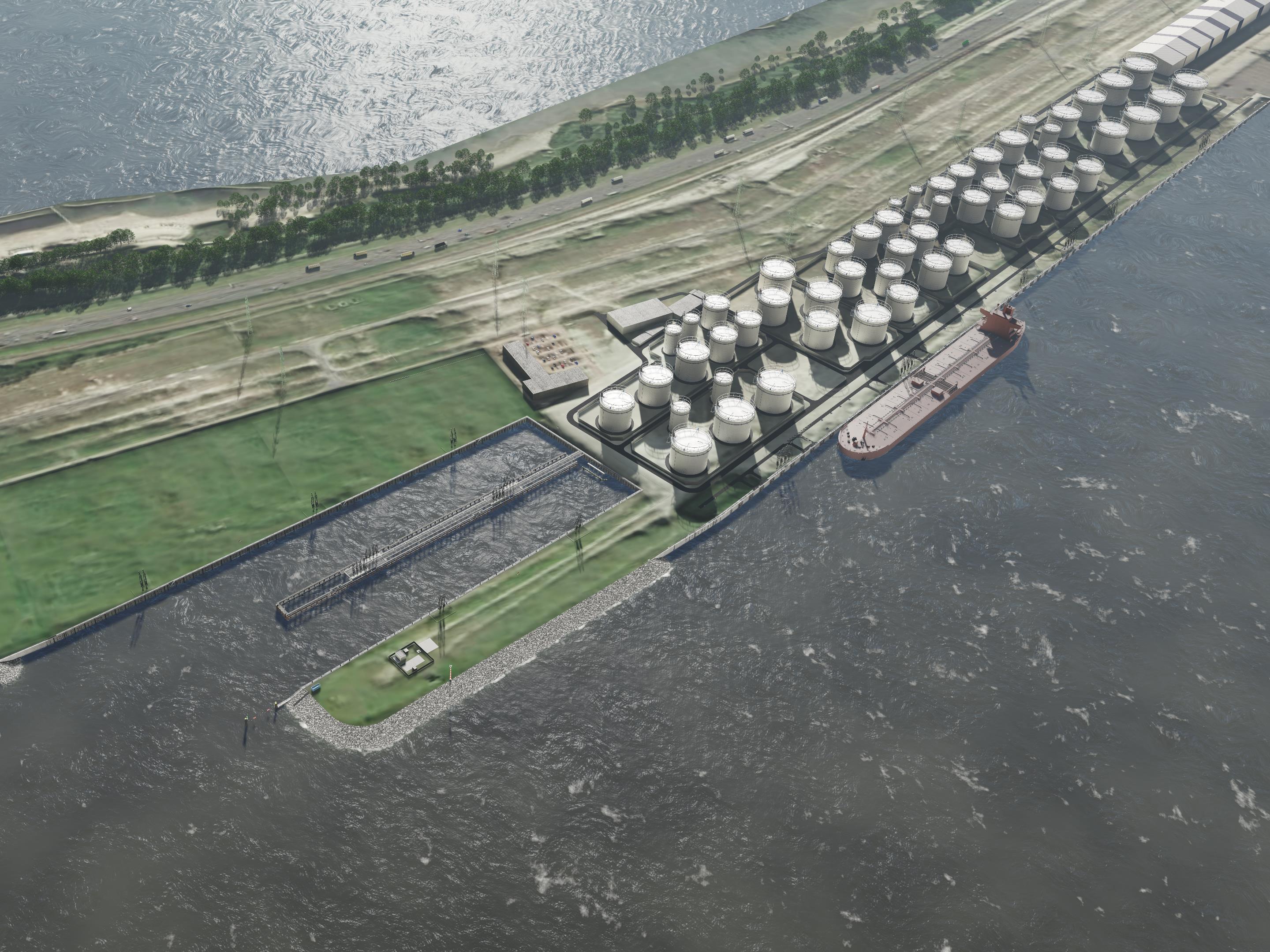 In de haven van Rotterdam wordt door HES International B.V. een nieuwe opslagterminal voor olieproducten gerealiseerd. Om zowel grote olietankers als binnenvaartschepen te kunnen ontvangen legt Boskalis met zijn partners een 1.200 meter lange kademuur aan voor zeeschepen, een 1.100 meter lange kademuur voor binnenvaartschepen, een 350 meter lange steiger met vier ligplaatsen alsmede oever- en bodembescherming.